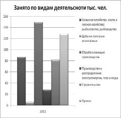 Вывод: Рост экономически активного населения повторяет тенденции общего роста уровня населения Владимирской области, а колебания связаны с воздействием экономических кризисов. Состояние по уровню безработицы нельзя назвать удовлетворительным для большинства лет. 2009 год считался крайне неблагоприятным в указанном аспекте, однако уровень безработицы в годы, предшествующие 2005, оказался ещё выше. Сегодня ситуация существенно улучшилась. По сферам занятости лидирует обрабатывающее производство. Ориентируясь на предыдущие главы, можно связать это с отсутствием таких полезных ископаемых как нефть, газ, железные руды в промышленных масштабах. Это вызывает необходимость сместиться в сферу переработки и сферу услуг. Несмотря на неблагоприятные агроклиматические условия, доля СХ остаётся на высоком уровне, приближаясь к паритету со строительной отраслью.